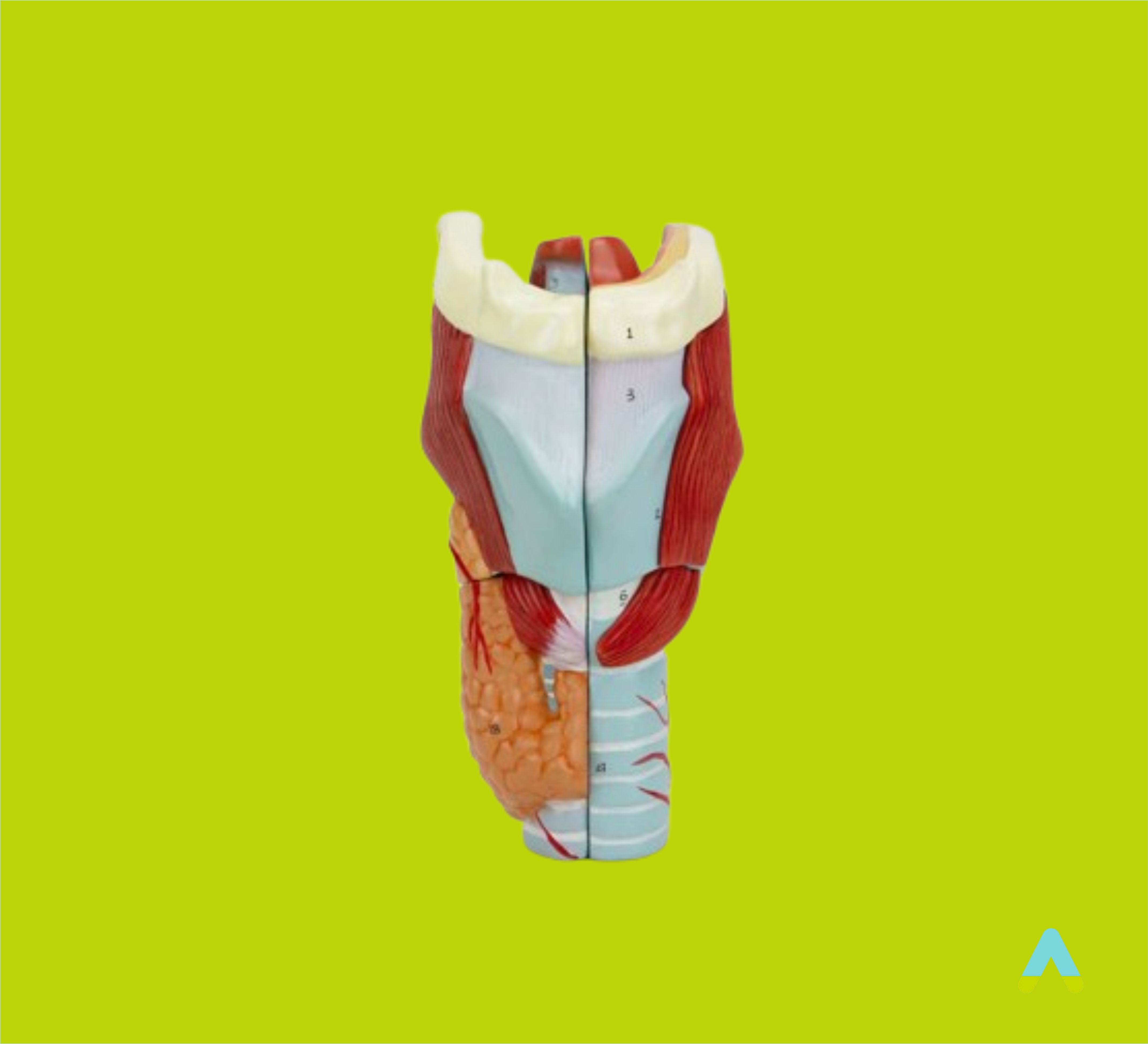 Модель використовується для демонстрації на уроках біології. Призначена для проведення контрольних, лабораторних робіт, а також усних опитувань при вивченні розділу «Людина». Модель є розбірною, дає змогу продемонструвати початкові відділи травної та дихальної систем: гортань, під'язикову кістку, трахею, зв'язки, м'язи, судини, нервові закінчення, щитовидну залозу.