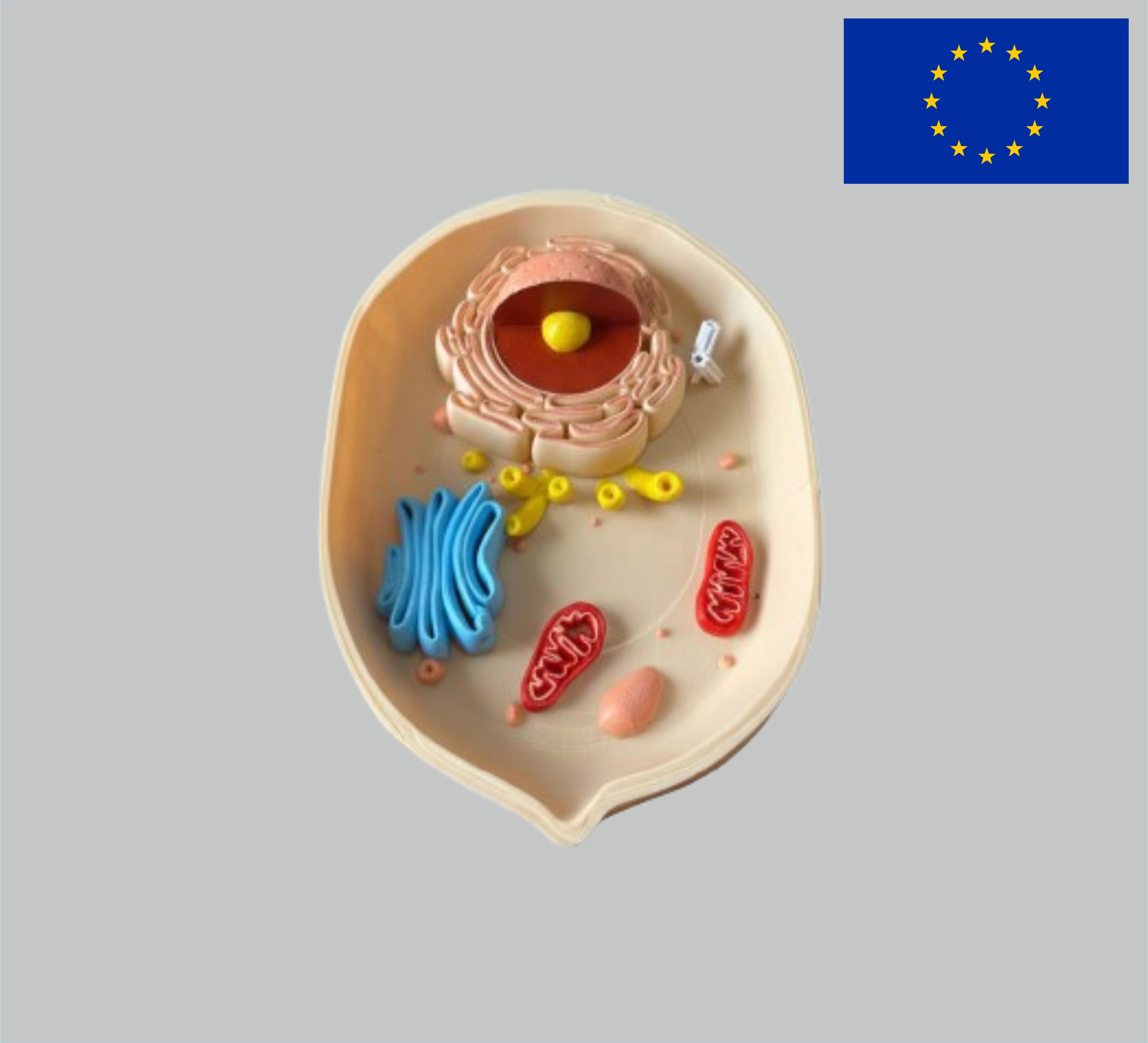 Модель демонструє зовнішню і внутрішню будову тваринної клітини і її органели.