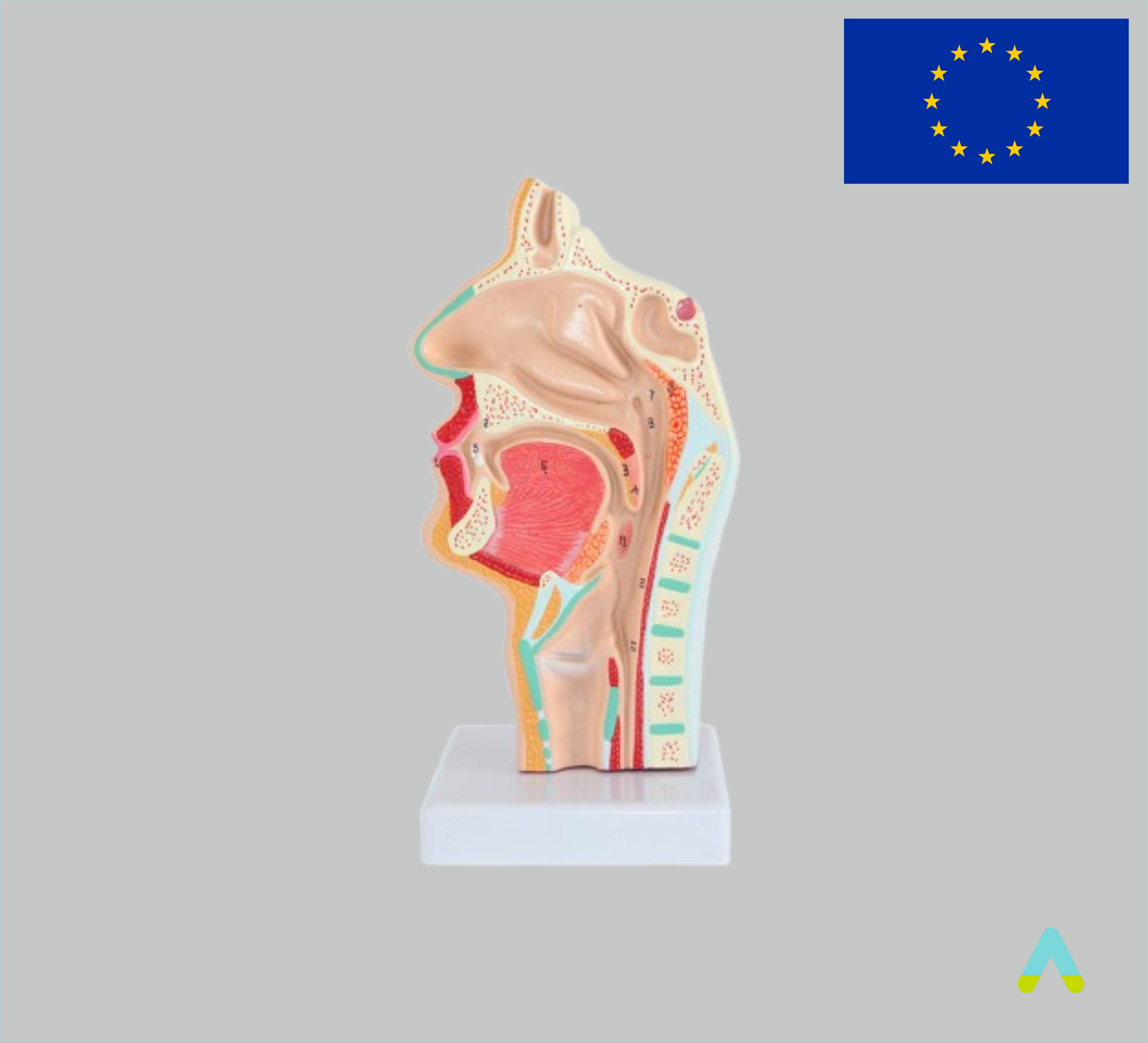 Модель використовується для демонстрації на уроках біології. Призначена для проведення контрольних, лабораторних робіт, а також усних опитувань при вивченні розділу «Людина», «Дихальна система». демонструє будову носоглотки людини в сагиттальном розрізі.