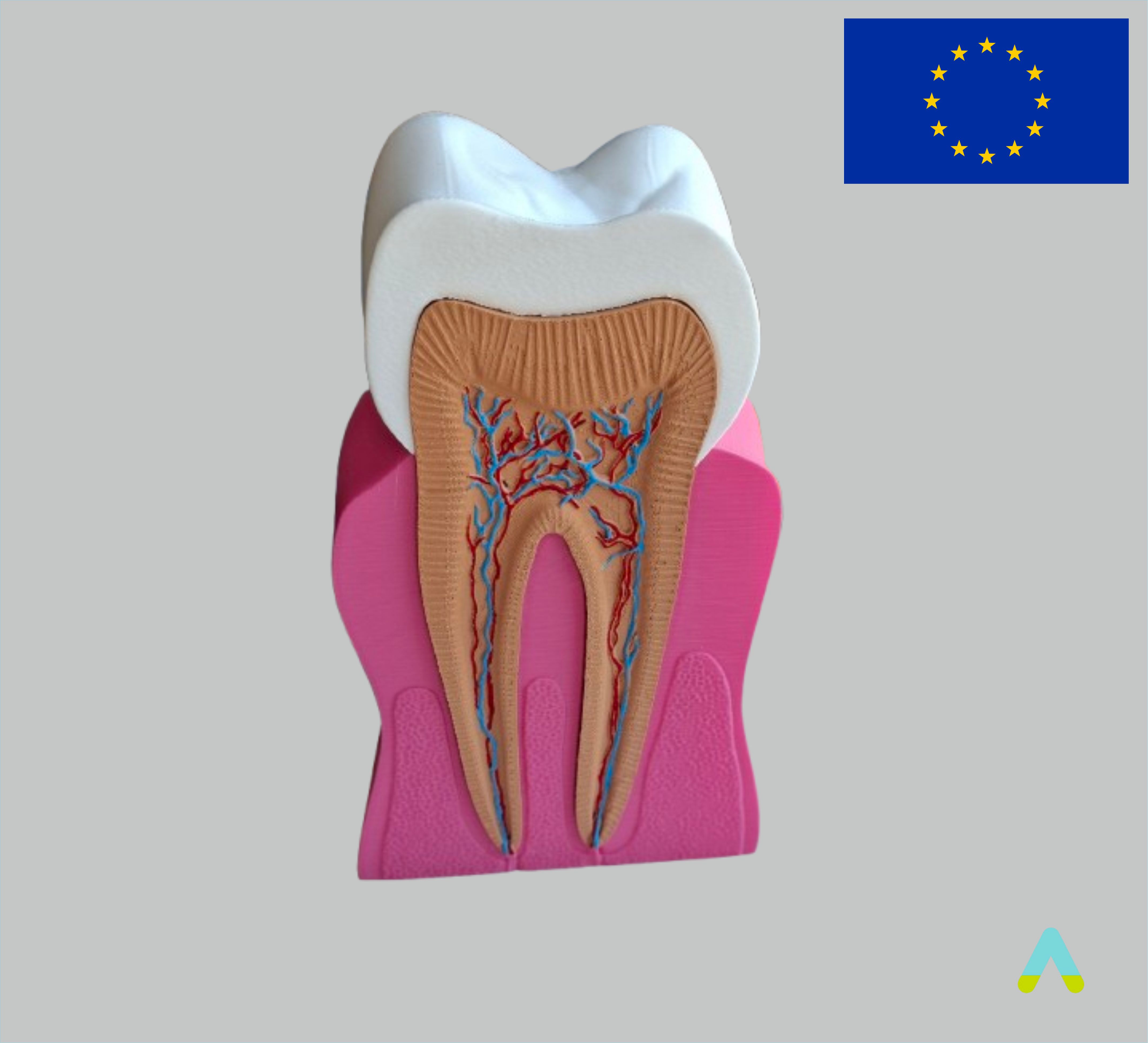 Модель будови зуба призначена для використання у загальноосвітніх закладах в курсі біології з розділу «Людина та її здоров'я» в якості демонстраційного матеріалу. Демонструє зовнішню і внутрішню будову зуба.