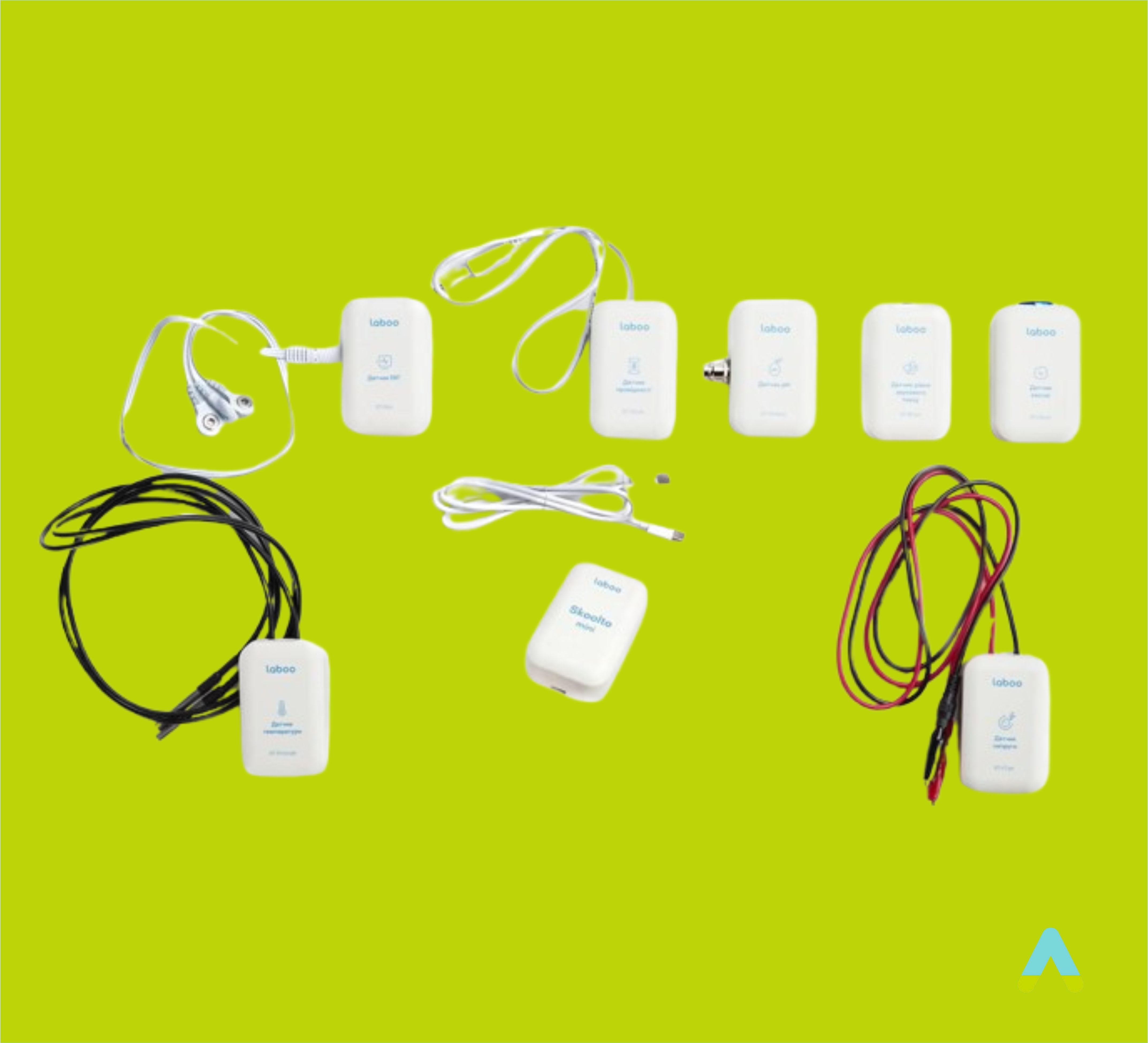 АЦП: роз'єм для підключення до ПК, 5 роз'ємів для підключення датчиків живлення від USB, датчики — провідне підключення type-c.