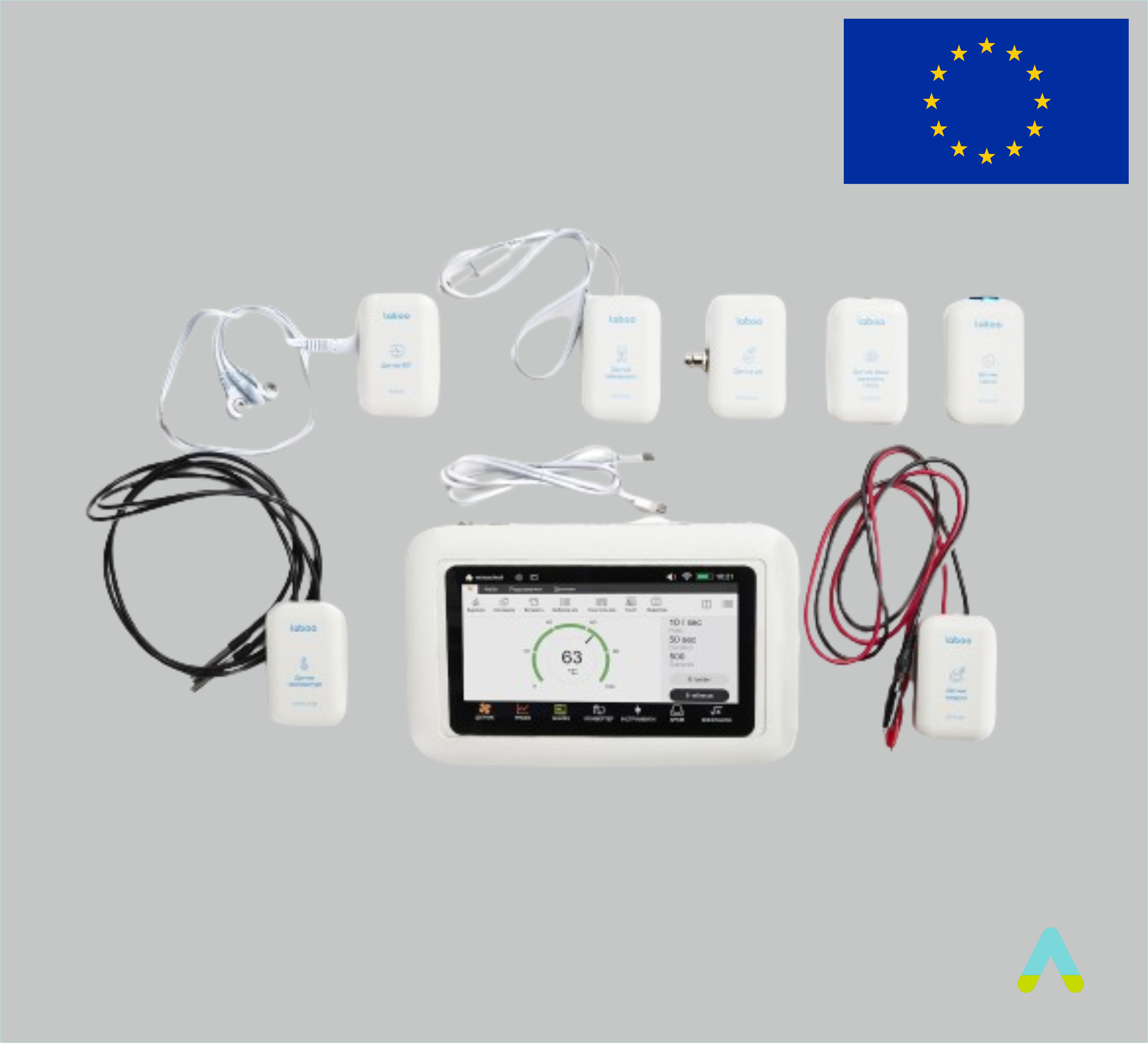 АЦП: дисплей: 7”, сенсорний, роздільна здатність 800х480. Живлення : 9В, 3А. DC Автономна робота — min 6 год. Можливість одночасного збору даних з 6 датчиків. Передача даних на ПК: провідна; WiFi, Bluetooth. Індикація увімкнення автономної роботи: світлова (підсвічування кнопки), вібрація. Можливість одночасного виводу інформації на вмонтований дисплей та комп'ютер.